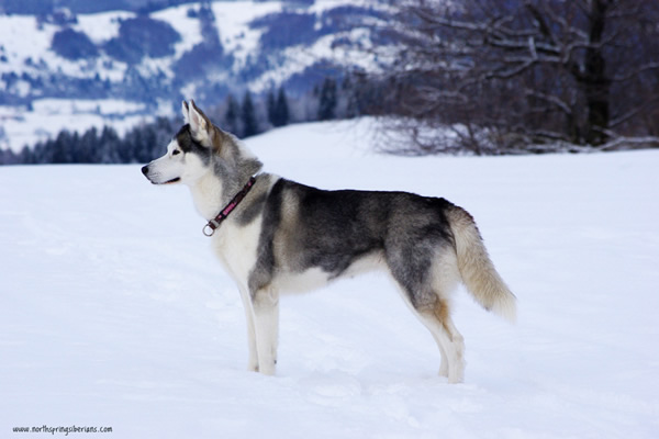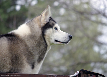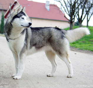Lana is the oldest of our girls, but never dominant. She is the cleverest in our pack. She is really easily handleable and always ready to work or play. In her appearance she is a correctly built husky with a bit bigger ears than expected, not a show dog. She is tall (56 cm) and strong female and has a very easy and light movement.