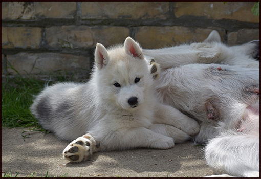 Tara was born on 4th of April in 2020. She was born in a COVID crises and it was not only a crises because of the pandemia, but also I had to make a decision if I stop breeding or I continue. We have Iva who was already almost 5 years old, a perfect female who represented the type and style I love in huskies and there was a male far far away who got my attention on the day when I saw him for the first time. The plan to mate Alex and Iva was in my head since I realized Iva's quality, but there was always a reason to delay the litter. This was the last moment and we went for it. Tara was born as 5th puppy in the litter, we had 4 girls and 1 boy, so after years I finally had a chance to choose from the girls but in reality I had no. There was from the first moment a special bond between us. I tried to look at the others as well but my eye always stoped on her. She was sweet and tender and very communicative. She always climbed into my lap, always leid next to me and listen to me. She was really clever, learnt all the basic things in the blink of an eye so I had no choice, she stayed with me and was my shadow in the coming 10 months. I loved her in the deepest way as a human can love a dog. She knew it, I know she knew it. She ment to stay with me much longer, she ment to come with me everywhere I go, I meant to show her the world and show her to the world. This all was stolen from us. Tara left us after a short but rapid sickness, she was biten by a tick and after 2,5 weeks, 5 days after the first symptom despite all the care on the best clinic her heart stoped. She left us and took a piece of our heart with her. I only hope that once when my time comes she will be there waiting for me, and I promise we will be each others shadows.